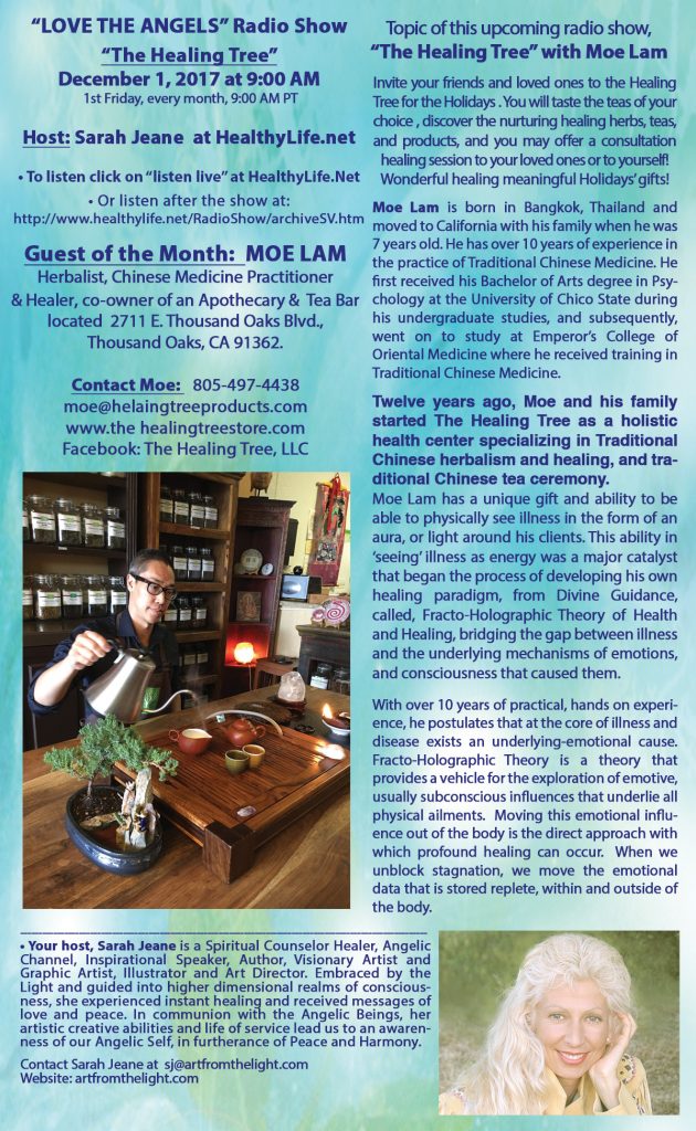 – December 1, 2017: “THE HEALING TREE” with special guest MOE LAM